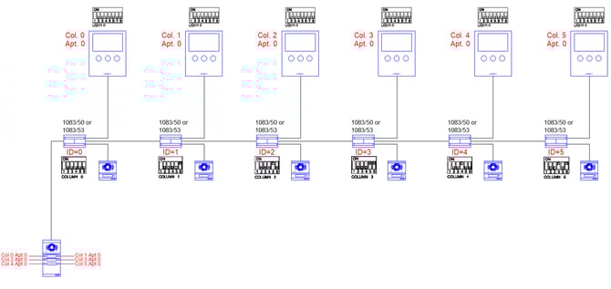 This type of configuration is required when installing a system with a ‘main’ panel and a number of columns or blocks, which may or may not have a ‘secondary’ panel –