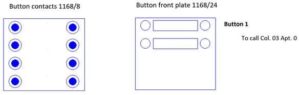 The above shows the position of the button contacts. The layout of the actual buttons will depend on the front plate module that you have.