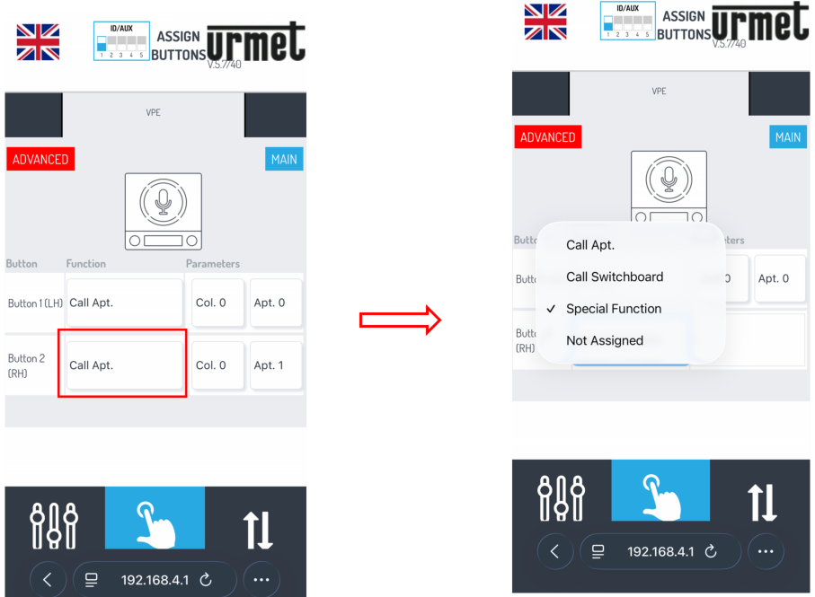 First change the language option to English and change the Advanced calling button configuration from Off to On –